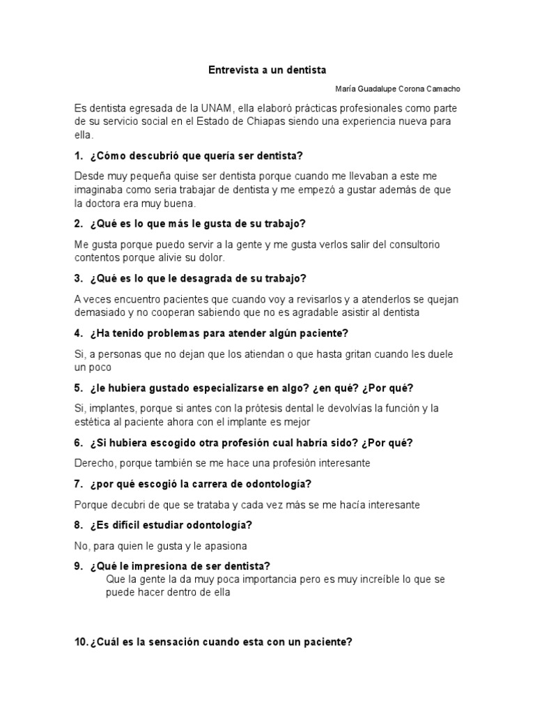 Entrevista A Un Dentista Pdf Odontologia Bienestar