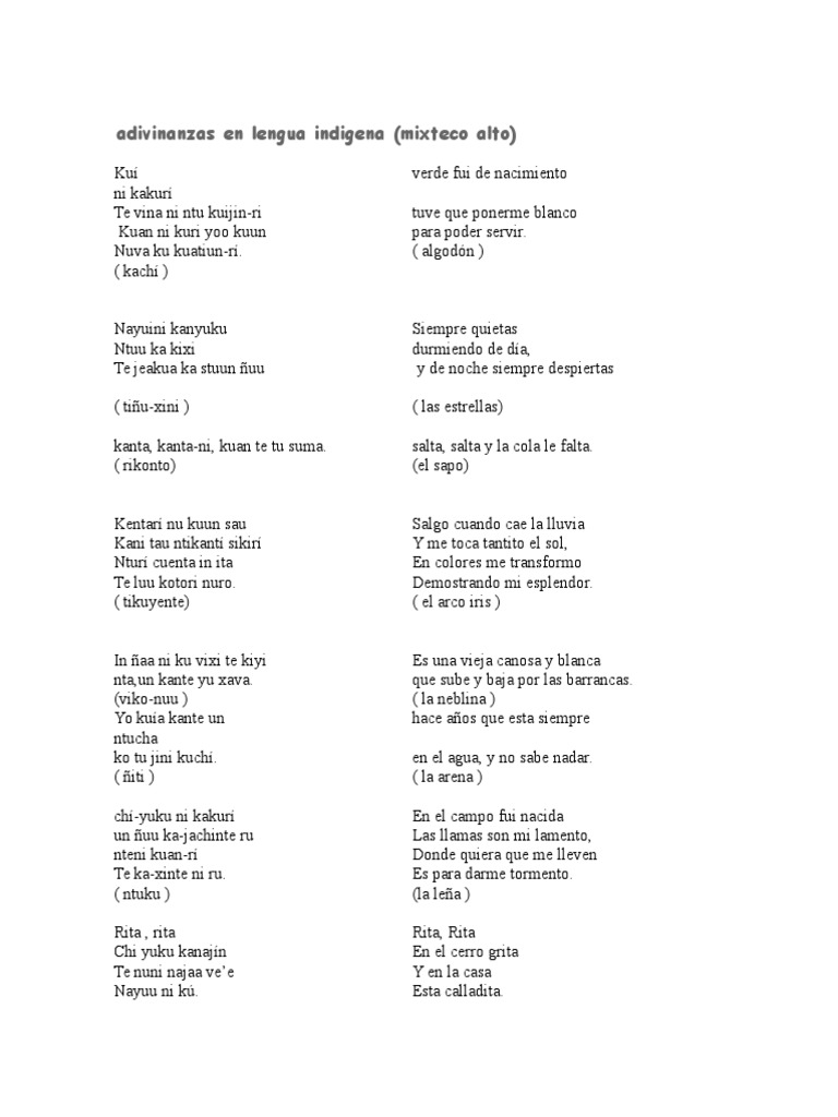 Adivinanzas En Lengua Indigena Pdf