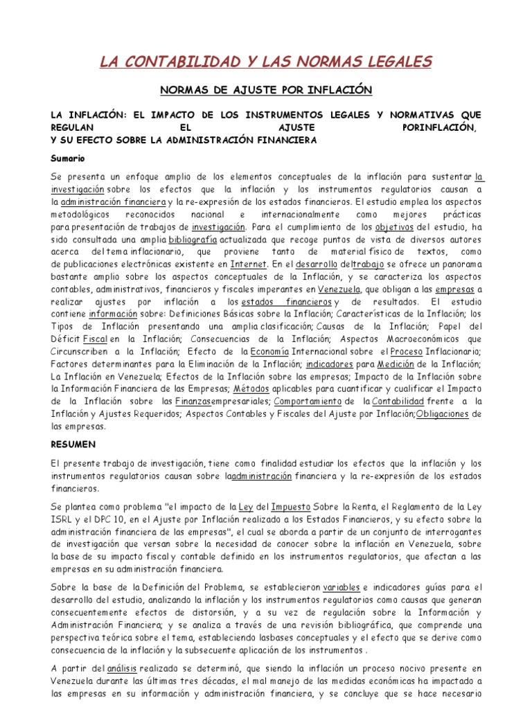 La Contabilidad Y Las Normas Legales Pdf Inflacion Precios