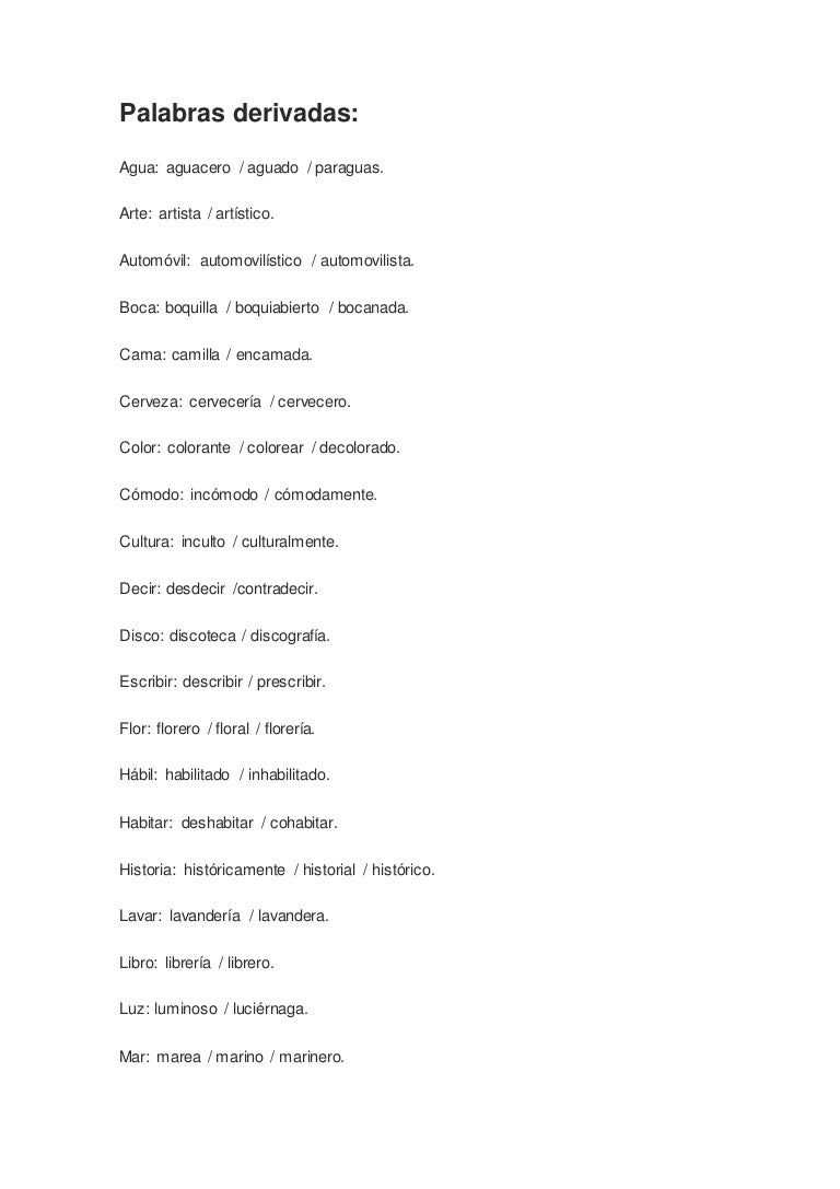 Palabras Derivadas Infantevirtual