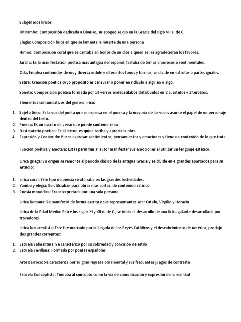 Subgneros Liricos Pdf Rima Poesia