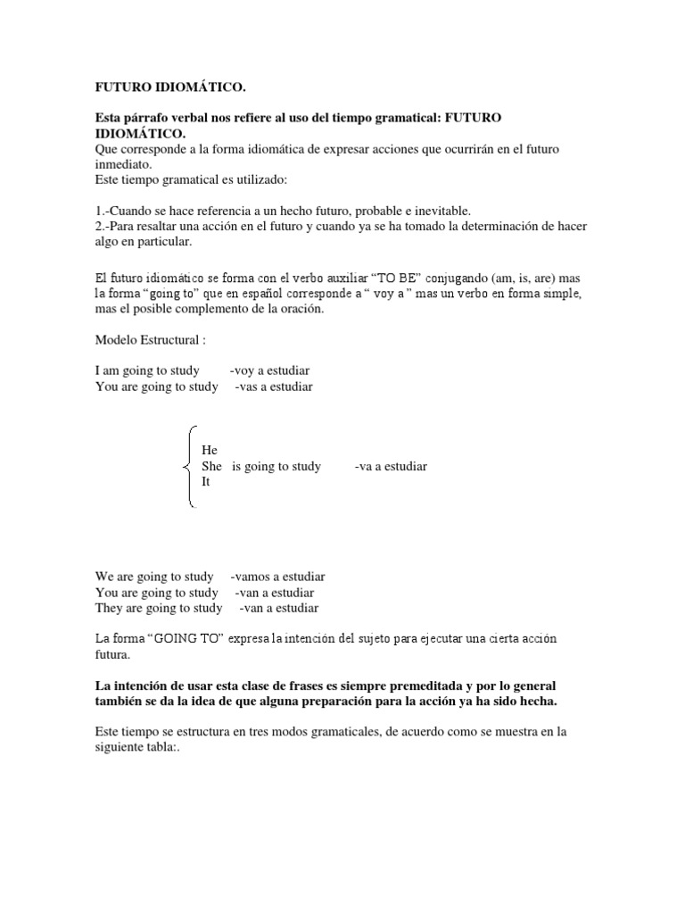 Futuro Idiomatico Going To Ingles 3