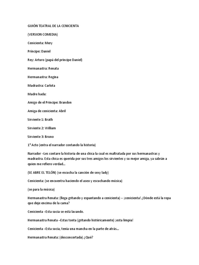 Doc Guion Teatral De La Cenicienta Jordy Cifuentes Academia Edu