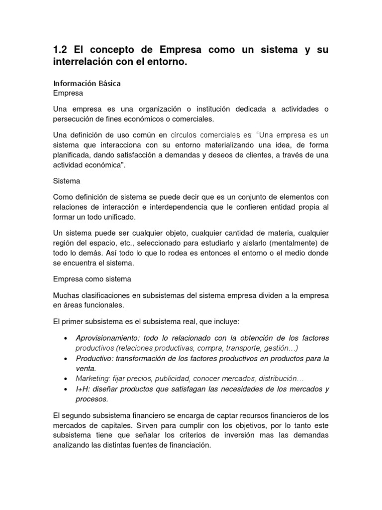 1 2 El Concepto De Empresa Como Un Sistema Y Su Interrelacion Con El Entorno Pdf Economias Business