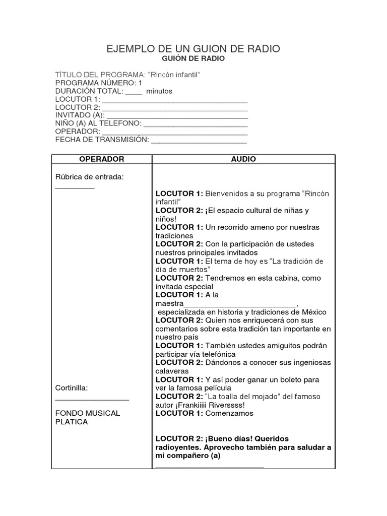 Guion De Radio Corto Para Ninos Ejemplos Hay Ninos