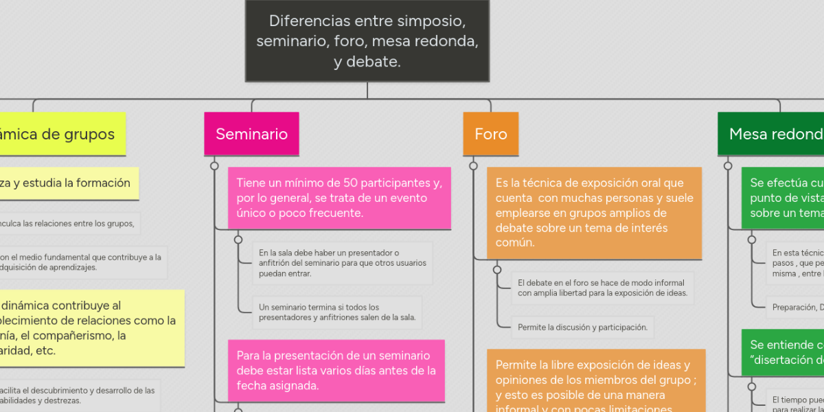 Diferencias Entre Simposio Seminario Foro Mesa Mindmeister Mapa Mental