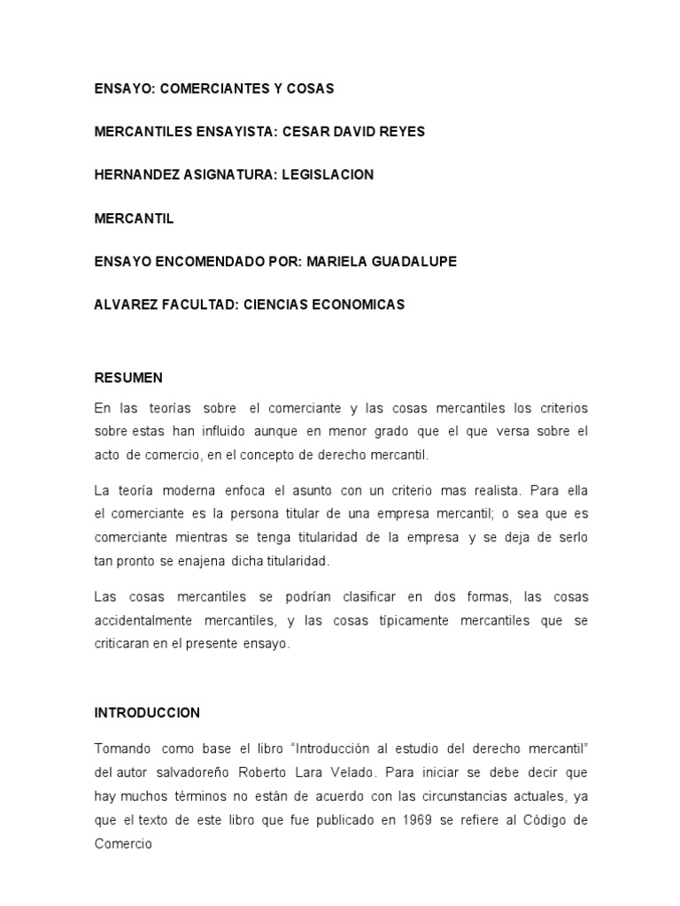 Ensayo Introduccion Y Generalidades Del Derecho Mercantil Ensayos Josue Taker
