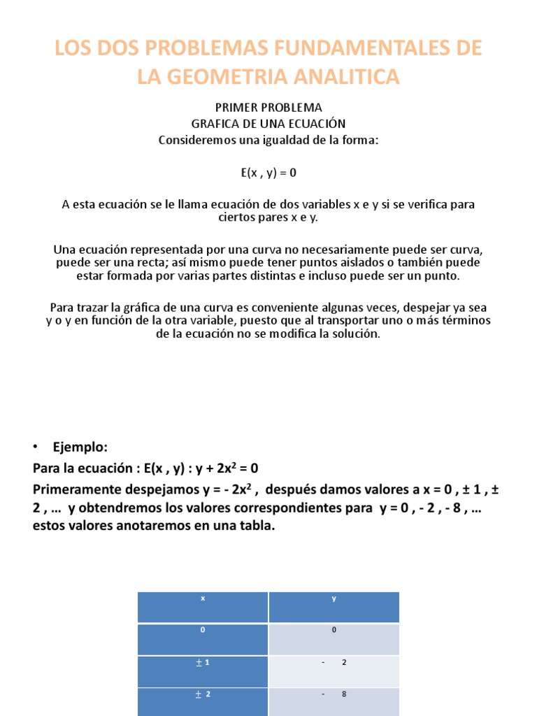 1 Dada la ecuación un lugar geométrico poder realizar su gráfica. 2 Dado un lugar geométrico poder representarlo por medio de. DOS PROBLEMAS FUNDAMENTALES DE LA GEOMETRÍA ANALÍTICA.