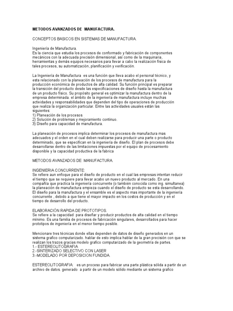 Metodos Avanzados De Manufactura
