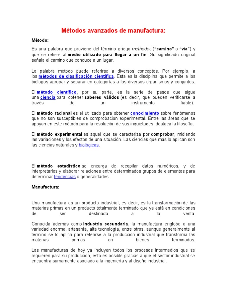 Metodos Avanzados De Manufactura Pdf Calidad Comercial Metodo Cientifico
