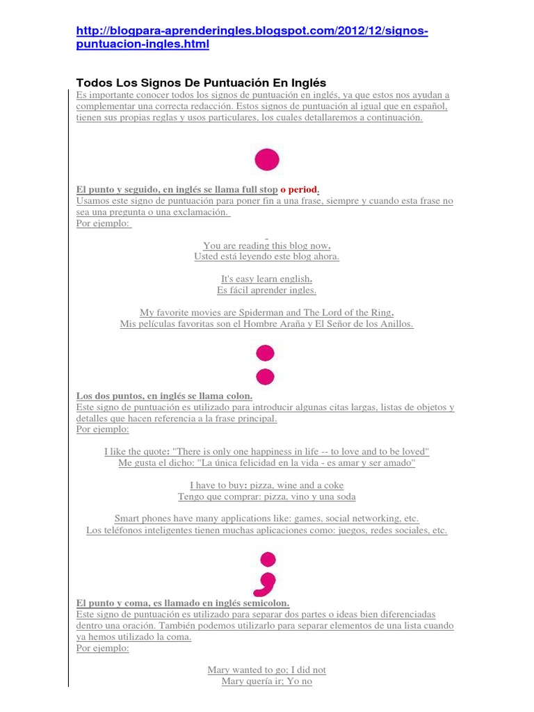 Signos De Puntuacion En Ingles