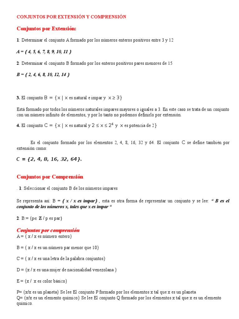 De Conjuntos Por Extension Y Comprension Pdf Conjunto Matematicas Ecuaciones