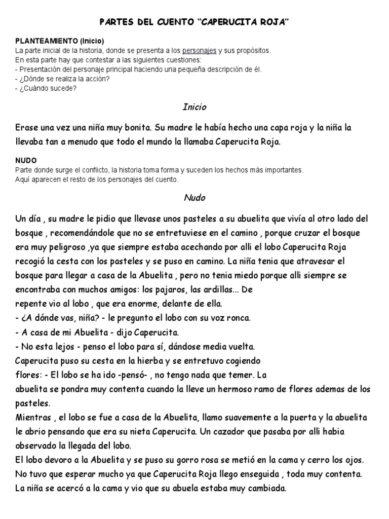 Partes Del Cuento Pdf Caperucita Roja Ocio