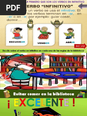 Reglamento de la biblioteca con verbos en infinitivo. Si inician con un verbo en infinitivo estos verbos terminan en ar er o irtambién verificarás si esas reglas son cortas y si están. Cuando esté listo el reglamento escríbanlo en un pliego de papel. 10 reglas de salón de clases en verbo infinitivoEs para mi tarea plis.