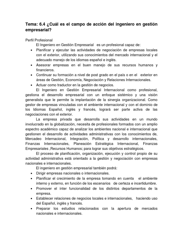 Tema 6 4 Cual Es El Campo De Accion Del Ingeniero En Gestion Empresarial Pdf Planificacion Gestion De Recursos Humanos