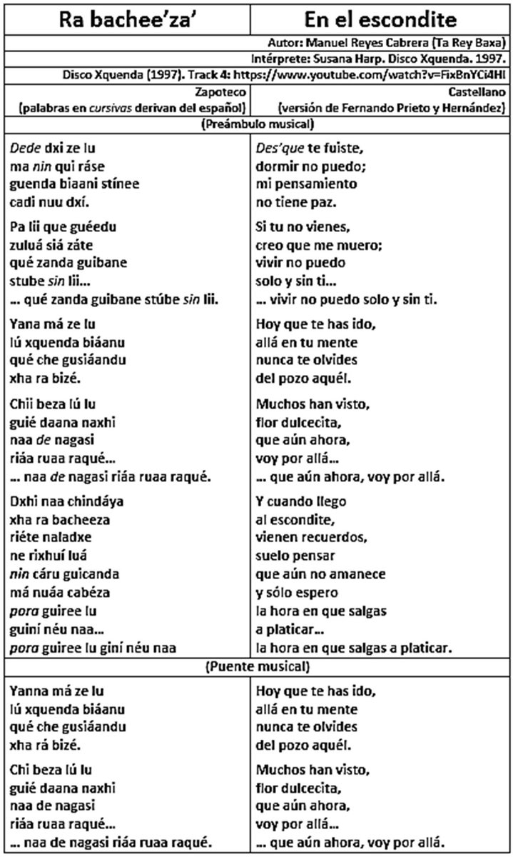 101 rows Letras en Zapoteco Deutsch English Español Français Hungarian Italiano Nederlands Polski Português Brasil Română Svenska Türkçe Ελληνικά Български Русский Српски العربية فارسی. Hola les traigo la letra de una melodia tradicional de la region Istmeña de Mexico es cantada en varios idiomas pero que ultimamente a los maestros les a dado por pedirselas alos alumnos en su idioma original de la region esto en Zapoteco.