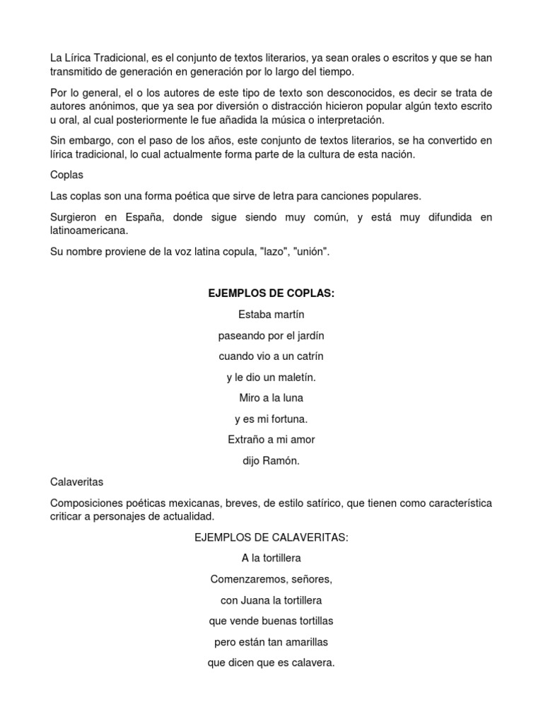 Estas son composiciones que se han conservado a través del tiempo gracias a la. Se refiere a un conjunto de expresiones populares como canciones refranes y coplas. México - letras de sus canciones.