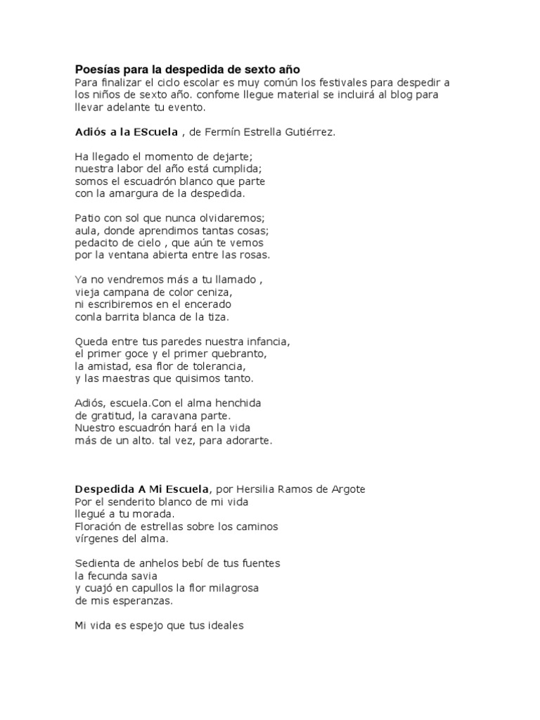 Poesias Para La Despedida De Sexto Ano 4 Pdf