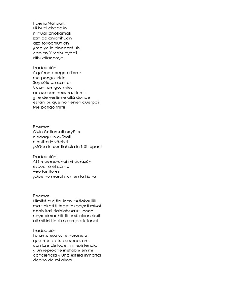 Rimas En Lengua Nahuatl Y Su Traduccion En Español Cortas