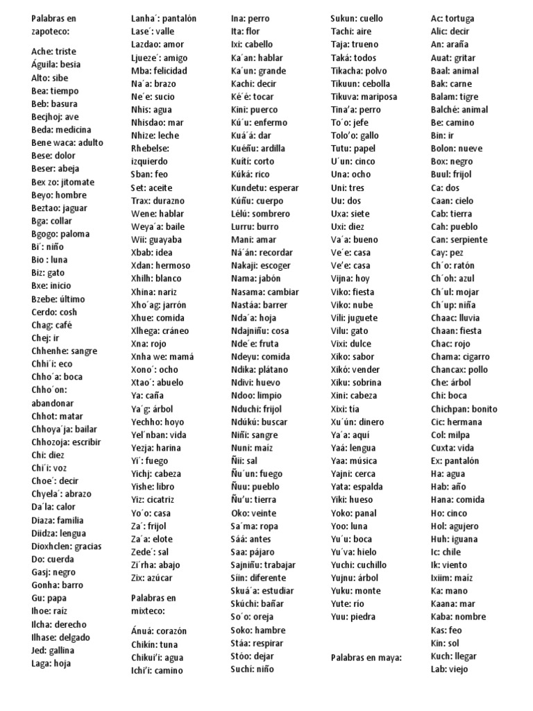Palabras En Nahualt Otomi Zapoteco