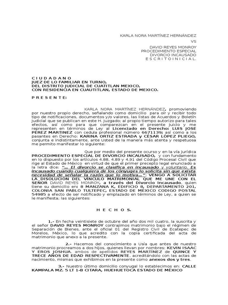 Demanda De Divorcio Incausado Estado De Mexico Ensayos Y Trabajos Rebecca