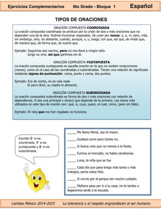 Ejercicios complementarios de sexto grado. Ejercicios Complementarios Sexto Grado - Bloque III. 6to Grado - Bloque 3 - Ejercicios Complementariospdf.