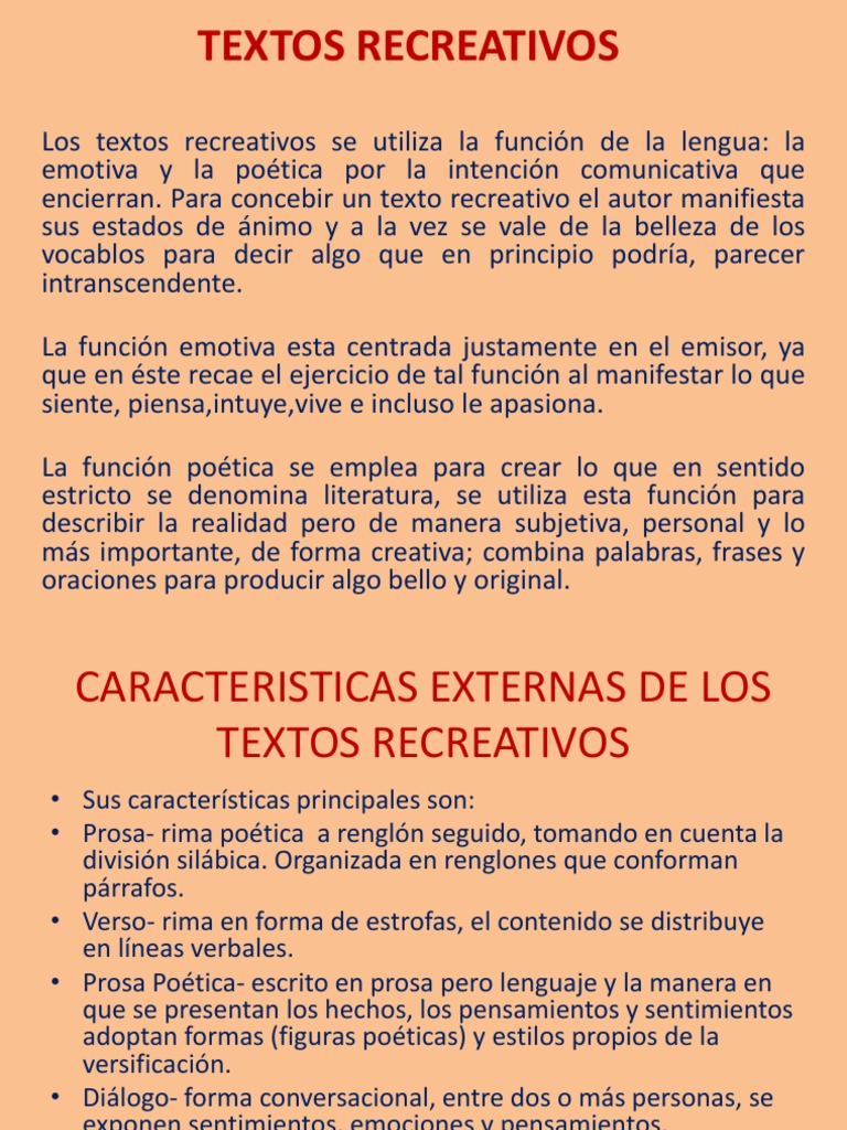 Caracteristicas De Los Textos Recreativos