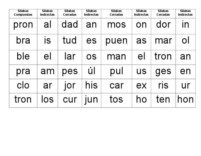 Silabas Compuestas Ejemplos De Palabras Con Silabas Compuestas